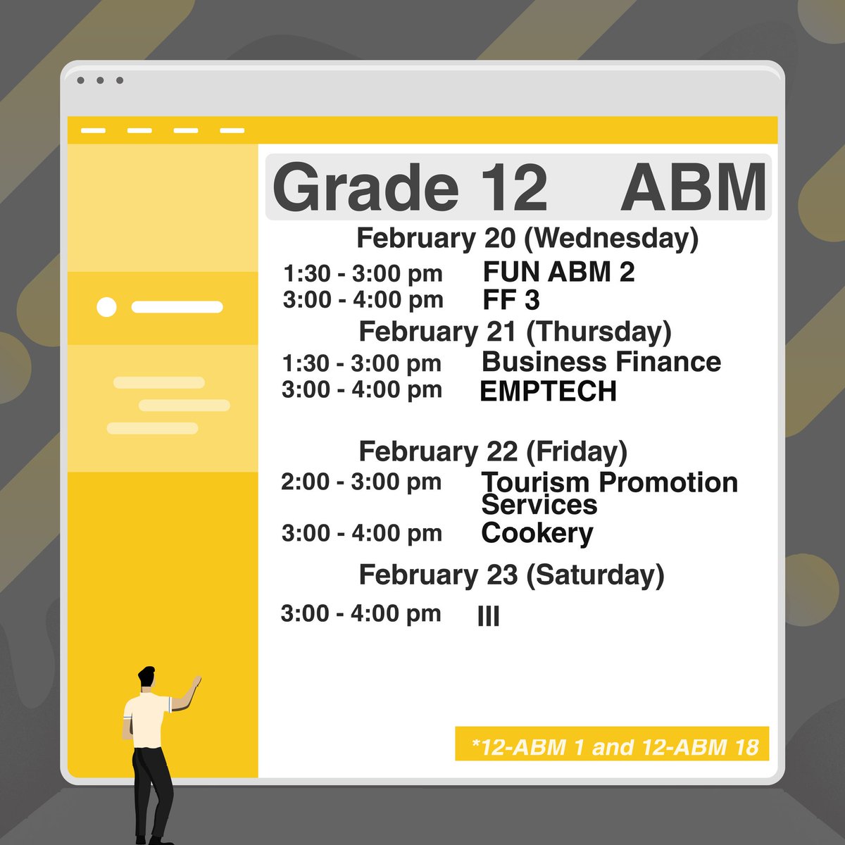 Ust Shs Sc On Twitter Grade 12 Abm Ha And Humss Schedule